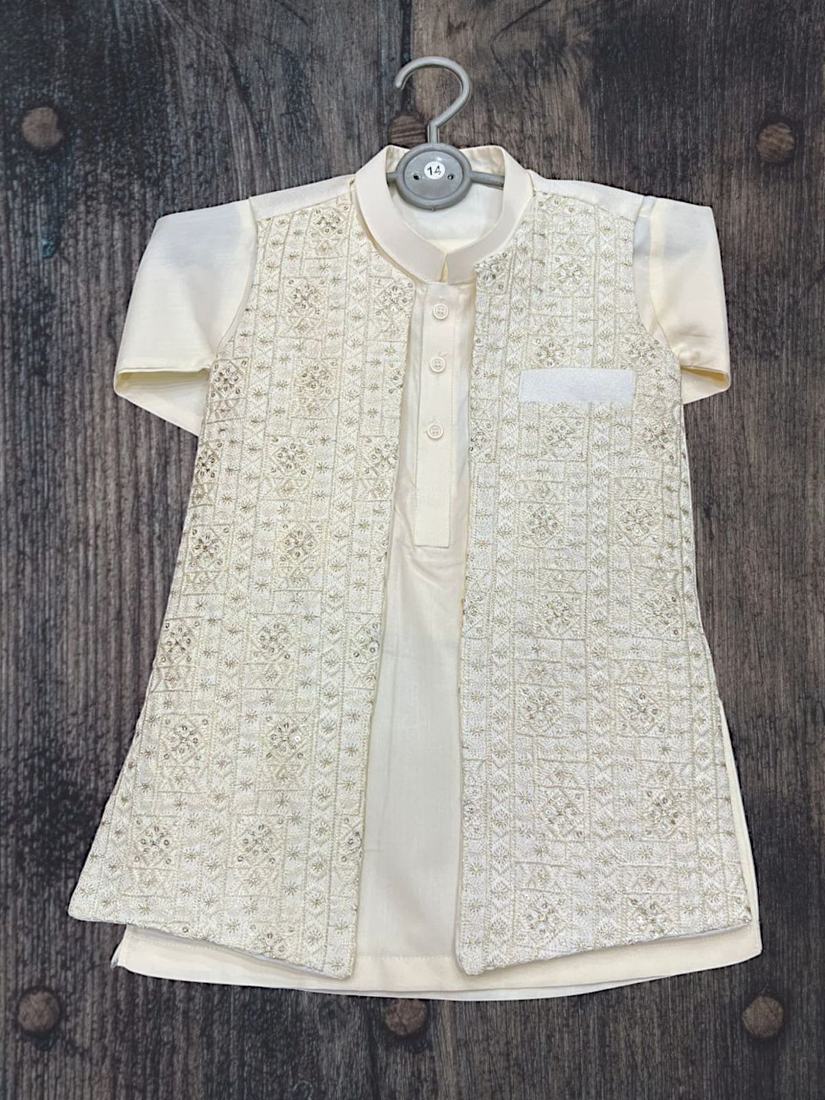 • Stylish off-white prince coat with matching trousers