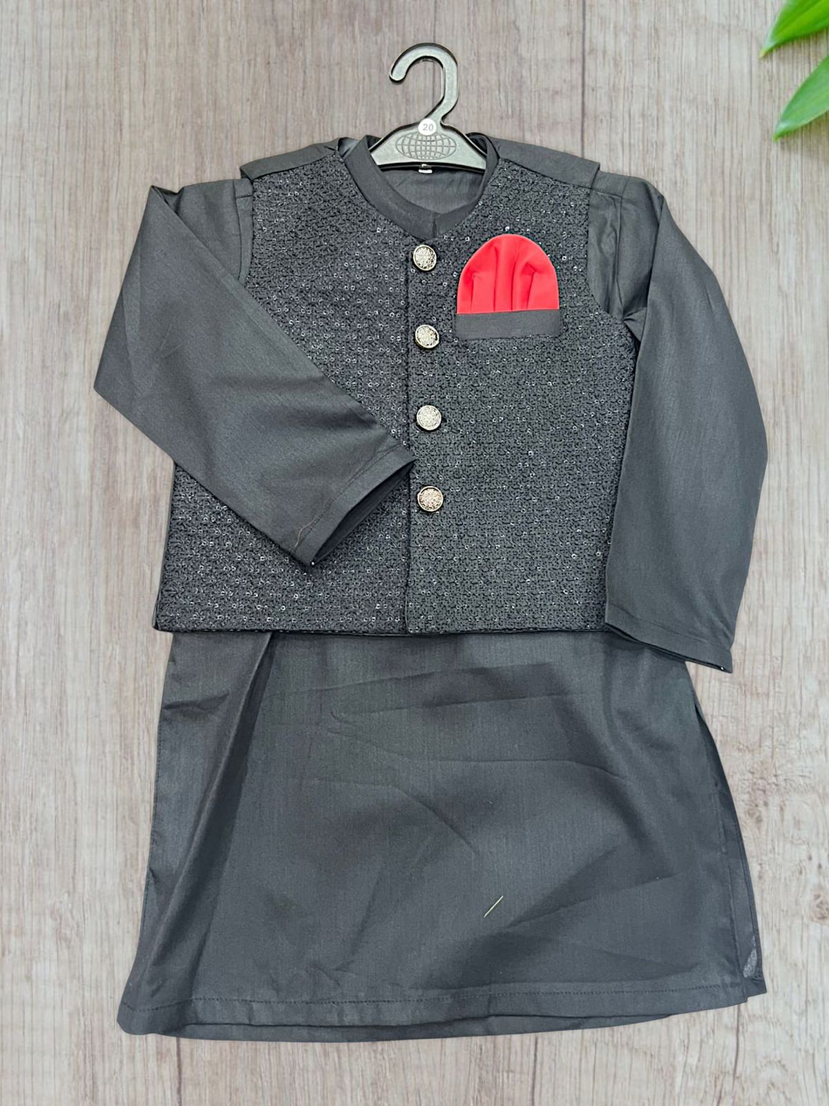 Boys Shalwar Kameez Suit With Waistcoat | Black