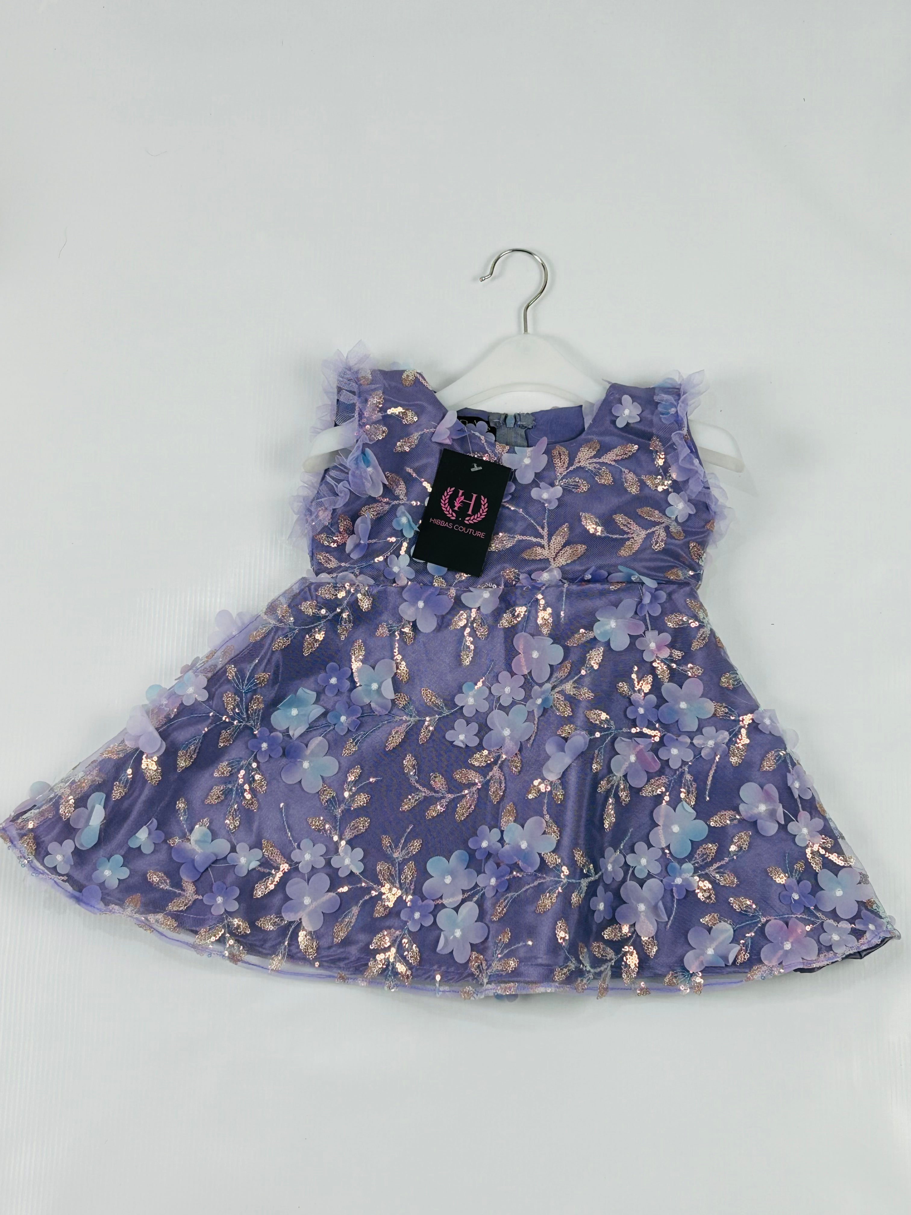 • Exquisite lavender party dress adorned with delicate 3D floral appliqués.